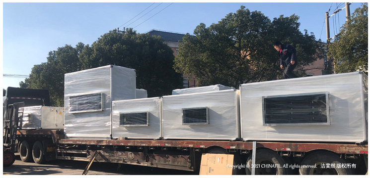 此次客户定制的VOC尾气排放处理系统为出风段过滤设备,内置一级过滤器为活性炭纸框分子过滤器,主要用来处理工厂生产车间排放的VOC废气,RAMBO箱体是亚博亚独立研发生产的一款模块化设计的空气过滤机组,主要用来满足工业生产过程中中低浓度的VOC污染物的净化排风需求,净化后的气体排放符合国家环保法规,并且,这款过滤设备曾顺利获取欧盟CE认证,出口过欧洲使用。