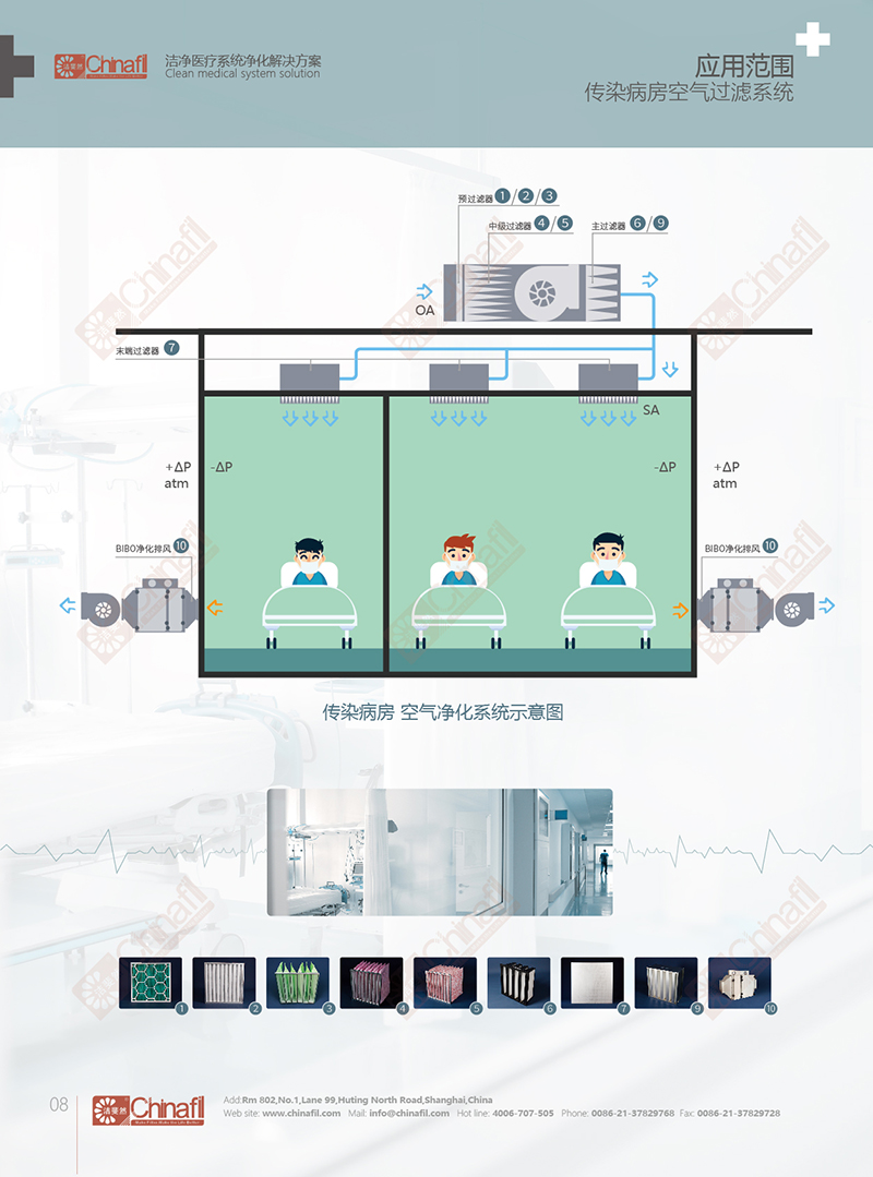 传染病病房空气净化方案主要应用的空气过滤器,可以分为以下两部分: