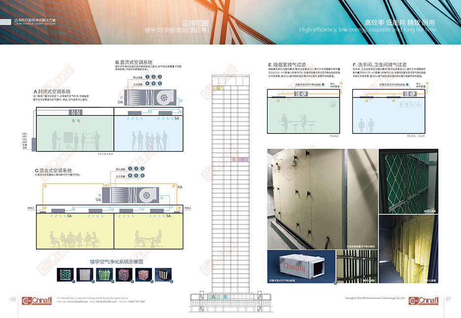 无论是全新楼宇规划设计还是旧建筑物系统升级,亚博亚(CHINAFIL)都提供一对一科学完善的定制化服务,从现场勘察到系统方案设计、从过滤器配置到安装测试验证。在综合考虑环境、需求、能效、成本等众多因素下,亚博亚以为您提供契合该楼宇的好空气净化解决方案为荣。